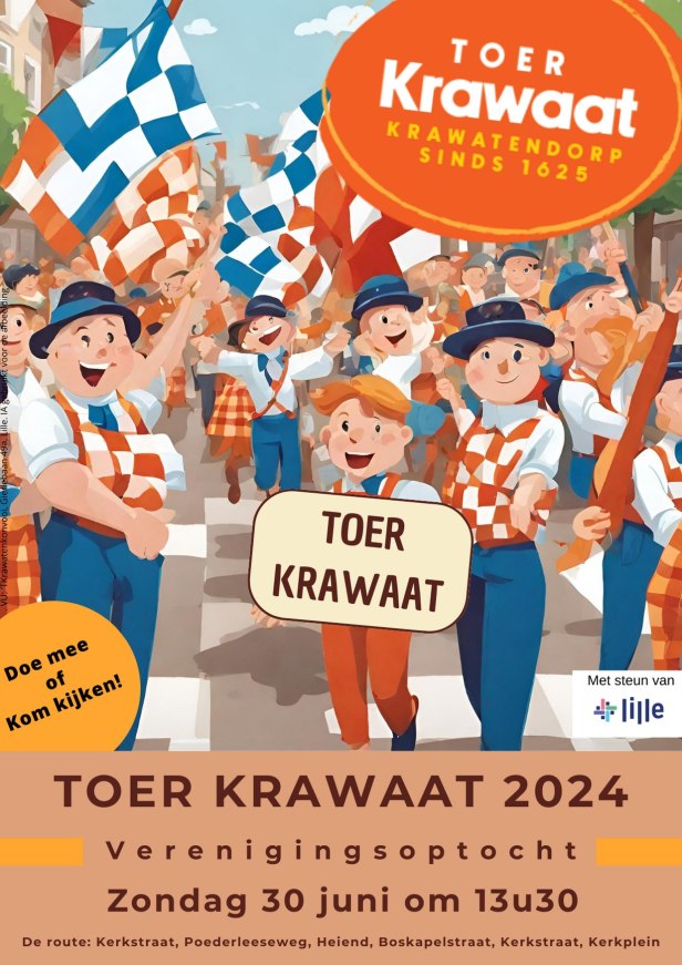 Onze tweede editie van Toer Krawaat was echt een schot in de roos. We verdubbelden maar liefst het aantal verenigingen die mee opliepen en het was wederom fantastisch weer. We experimenteerden dit jaar ook met AI voor onze affiche en kregen eigenlijk een bijzonder tof resultaat.
